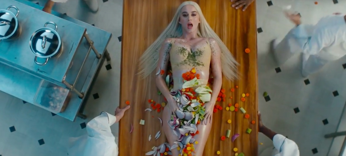 Et prennent très au sérieux la métaphore plutôt crue (pour jouer sur les mots) de leur morceau commun, sorti il y a quelques jours, où le corps de la pop star, comparé à un restaurant, est "ouvert 24h/24". Dans ce clip délirant, Katy Perry, sous-vêtements chair et allures de Barbie, est donc quasi-nue, recouverte de farine, pétrie comme de la pâte, parsemée de petits légumes puis découpée, littéralement. La vidéo vient de sortir : découvrez-la ci-dessous.