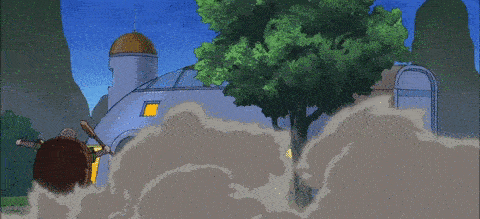 9) Chi-chi est extatique et n’en revient pas. Elle permet à Goku de partir s’entraîner chez Kaio en lui faisant promettre de revenir de temps en temps. Il s’y rend sur le champ. C’est alors que Tortue Géniale arrive et demande à acheter une montagne de vidéos coquines avec l’argent. Bien sûr, Chi-chi s'énerve, refuse, et le sort de la maison.
