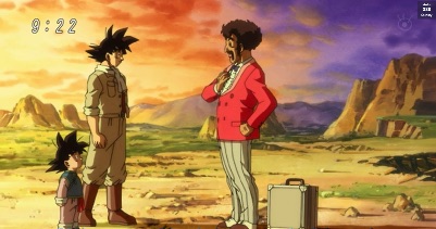 8) Nous retrouvons Goten et Goku qui regardent le coucher de soleil lorsque Mister Satan arrive soudainement dans une belle voiture. Il souhaite remettre à Goku la récompense de 100 millions de zenis pour avoir sauvé le monde. Au début Goku refuse l'argent et apprend que Végéta a fait de même. Sauf qu’il finit par accepter, après avoir écouté les conseils de Goten : avec cette rentrée d’argent, Chi-chi lui permettra de partir se former chez Kaio.