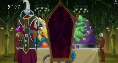 3) Loin dans l'espace, une race extraterrestre – inconnue – a préparé un dîner pour le Dieu de la Destruction, Beerus, accompagné de son fidèle conseiller Whis. Sous les regards nerveux et apeurés du Roi de la planète et des cuisiniers, Beerus semble prendre un malin plaisir et son temps à choisir un plat. Après dégustation d’un met qu’il trouve bon mais gras, il décide de ne désintégrer la planète que d’une moitié... et en un claquement de doigts.