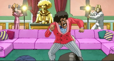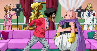 4) Dans Satan City, Mister Satan donne une conférence de presse sur la manière dont il a « sauvé » l'univers, lorsque Boo fait irruption dans la salle en hurlant avoir faim. Embarrassé devant les journalistes, M. Satan tente de sauver la face en affirmant que celui-ci est son disciple, un jeu de regard entre eux s’engage aussitôt. Boo, mécontent, finit par souffler de la vapeur et quitter la pièce. M. Satan le rejoint, lui fait un massage et lui promet une avalanche de nourriture.