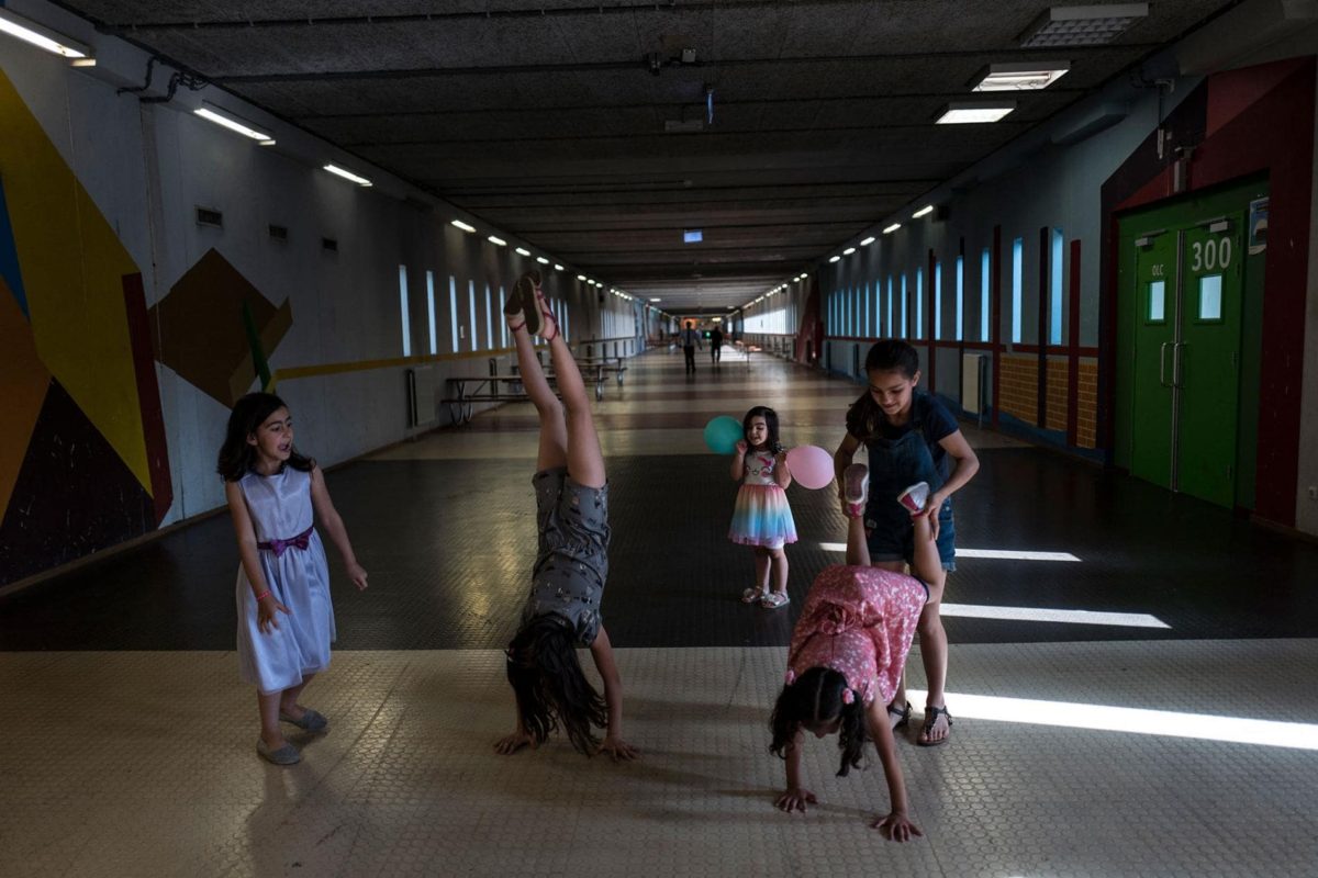 Des jeunes filles syriennes jouent au ballon dans le hall Kalverstraat de la prison. @MUHAMMED MUHEISEN, AP National Geographic