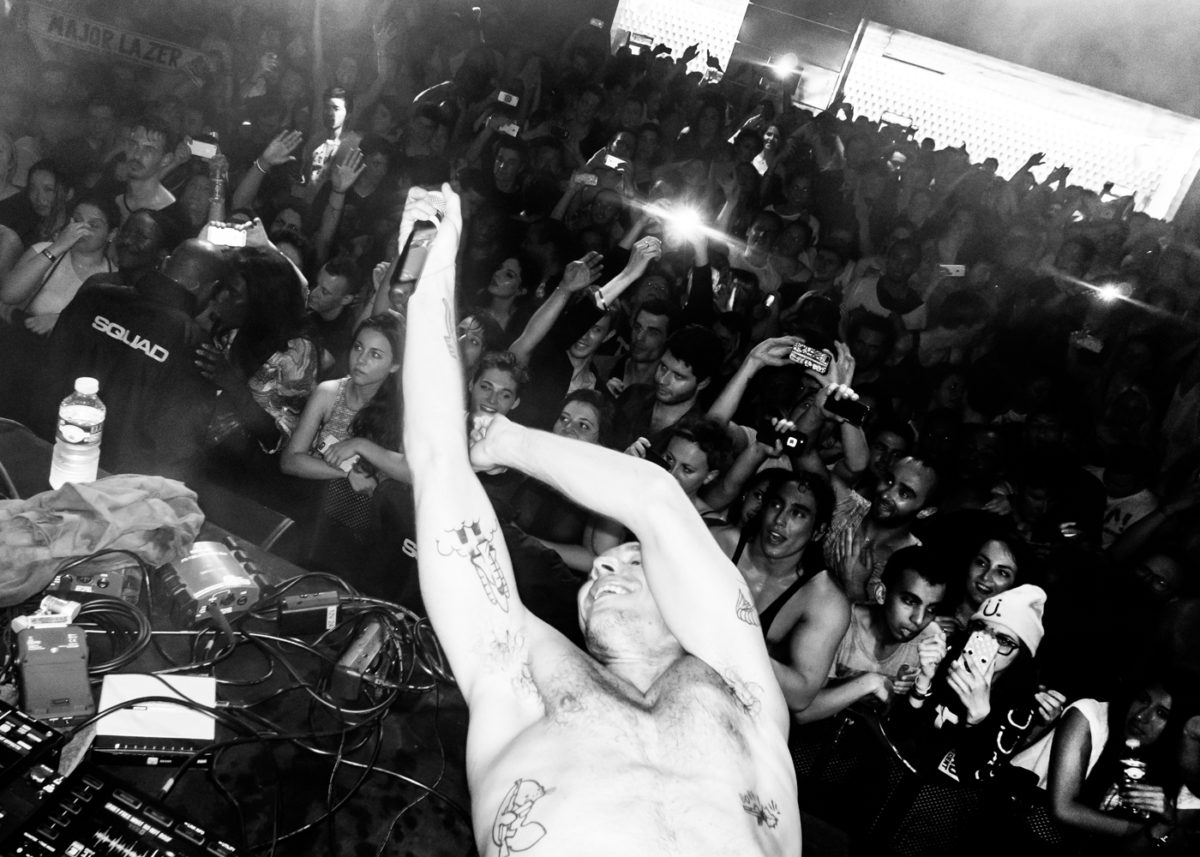 "Cinq heures que je suis Major Lazer à la trace. Ils ont décidé de faire trois clubs en une nuit, je monte sur scène avec eux pour la dernière partie, jusqu'au moment où Diplo ne contrôle plus rien et s'allonge sur la table devant moi".