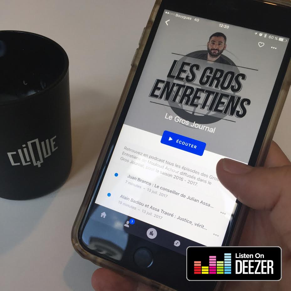 Les podcasts des Gros Entretiens sont disponibles sur Soundcloud, iTunes et Deezer en cliquant sur les images ci-dessous :