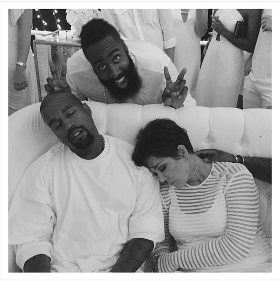 James Harden, Kanye West, Kris Jenner et une main mystérieuse Article réalisé grâce aux recherches de la précieuse Meryl Marciano, journaliste pour Clique.