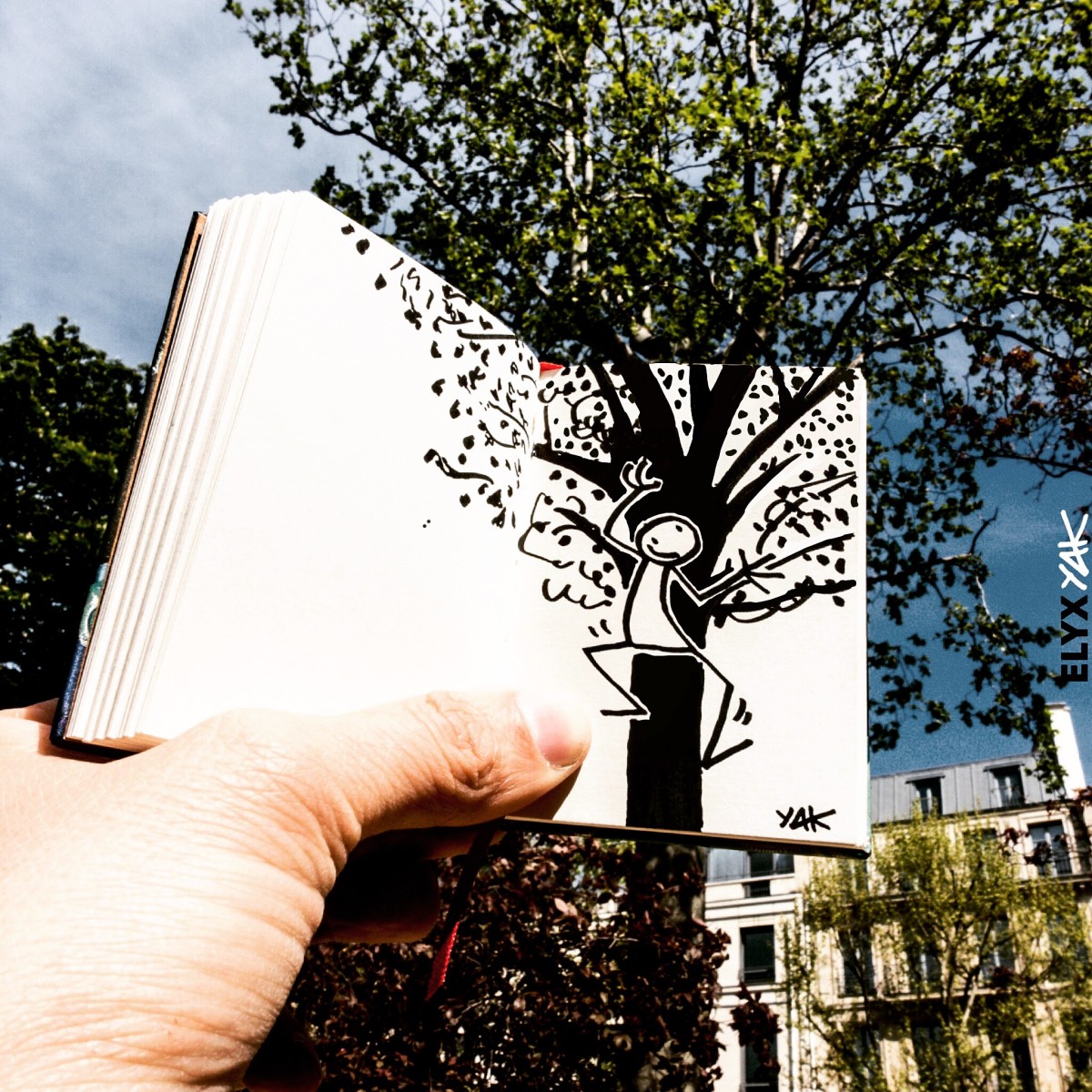 "Je suis, de fait, rapidement devenu un étranger aux yeux de mes camarades. Et lorsque je suis rentré en France, la même histoire s’est reproduite."Au-delà de l’exutoire, dessiner devient pour celui qui se définit comme un « Smile Maker » une soupape créative lui permettant d’exprimer cette volonté de relier en s’adressant à tous. En témoigne le succès rencontré sur la toile où il déclenche instantanément une avalanche de sourires. Souvent comparé au travail de Keith Haring, Yacine avoue être le fruit de ses influences. Les BD Moebius, en passant par Gary Larson ou encore Little Nemo de Winsor Mccay, l’ont toutes nourrit différemment, mais ce qui différencie Elyx d’autres personnages c’est qu’il possède une « vie organique. »