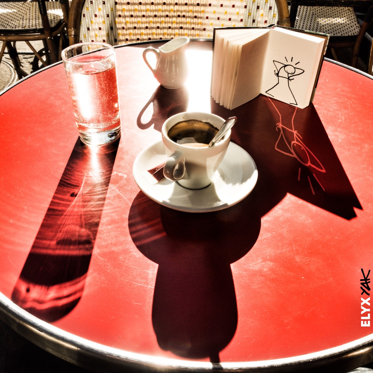 Nous le félicitons, il se dérobe. Il préfère parler d’Elyx né d’un travail hybride, mêlant photographie et dessins croqués sur le vif.