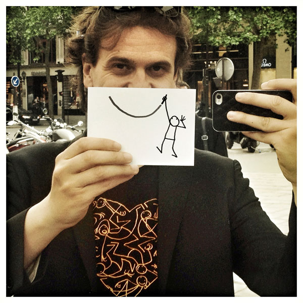 C’est aussi, en troquant le clavier par le feutre, via le geste de la main, que le Smile Maker a réintégré l’humain au cœur de son processus créatif. Pourtant, la simplicité des moyens n’annihile en rien le caractère pleinement digital de la démarche, bien au contraire. Hybridation entre réel et virtuel, Elyx croqué sur papier puis pris en photo s’incarne partout pour exprimer une pensée, une situation, partagée instantanément par une communauté en plein essor.