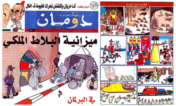 Le gouvernement a lancé une campagne publique de dénigrement contre mon magazine, avec des messages à la TV pour dire que nous ne pouvions être indépendants vu qu’on mettait de la pub. En 2000, le premier ministre, socialiste et pourtant défenseur historique des libertés, nous a ensuite interdits de publication. Je me suis alors lancé dans un pari, je me suis rappelé qu’Hassan II avait dit un jour qu’une presse satirique du style du Canard Enchaîné ne pourrait jamais exister au Maroc. Chiche ! J’ai lancé l’année d’après un tabloïd satirique hebdomadaire de 16 pages, que j’ai nommé Demain Magazine, avec un titre à peine différent pour faire un pied de nez au régime.