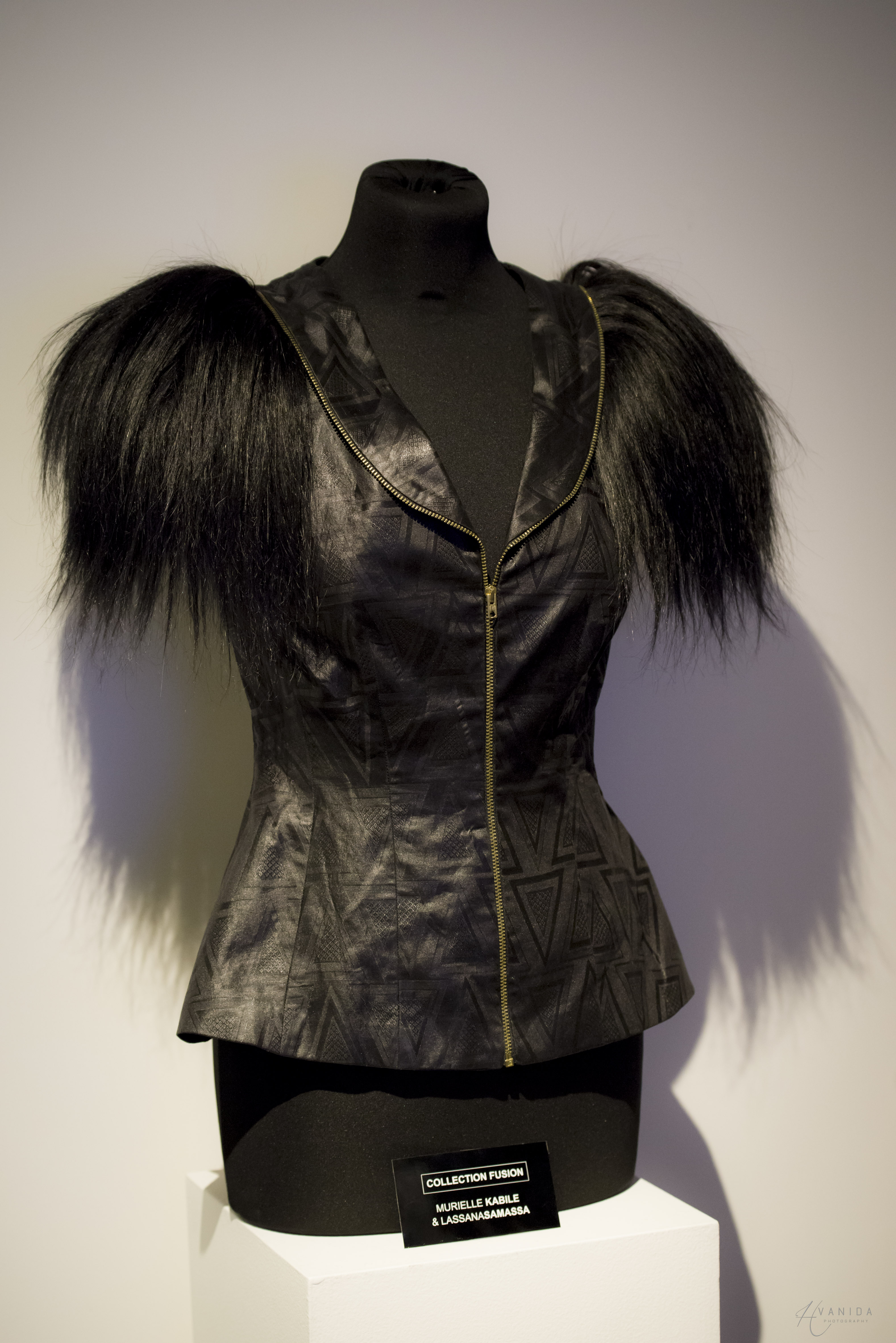 La veste "Armure" en bazin et cheveux naturels réalisée avec Immortel pour la collection "Fusion"