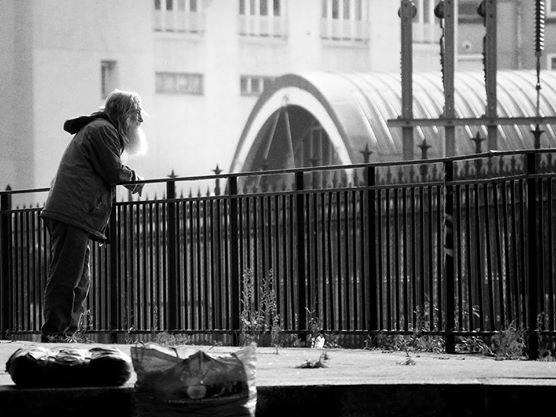 Un jour, je sortais de Boulogne, je venais d’acheter mon premier appareil photo, un Nikon… et je me suis arrêté vers La Chapelle, Stalingrad. Il y avait un pont, et un SDF regardait les départs de trains. C’est mon premier clic sur l’appareil. Je n’ai vu la photo qu’un mois plus tard, chez moi, en triant les images. Moi-même je ne m’attendais pas à ce résultat. J’ai décidé de continuer. Cette image c’est le commencement… d’ailleurs, c’est comme ça qu’elle s’appelle : « Le Commencement ».