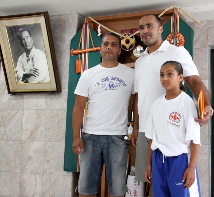 Shihan Fracisco Filho, Shaïnez et son père au Honbu-Dojo à Tokyo lors du championnat du monde de 2009, © KFT Vernouillet