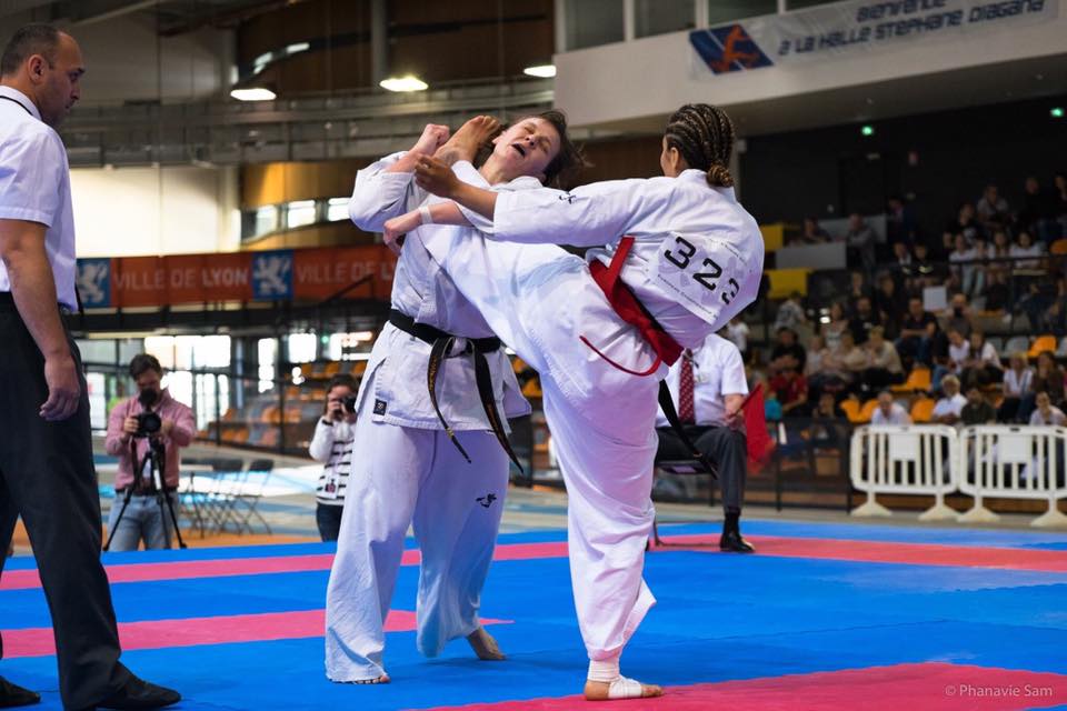 Traduction : - Nous entraînerons nos coeurs et nos corps pour obtenir un esprit ferme et inébranlable. - Nous poursuivrons la véritable voie des arts martiaux afin que nos sens soient en éveil le temps voulu. - Avec vigueur, nous chercherons à cultiver un esprit d’abnégation. - Nous observerons les règles de la courtoisie, respecterons nos supérieurs et nous abstiendrons de toute violence. - Nous respecterons les religions et n’oublierons jamais les vertus de l’humilité. - -- Nous n'aurons d'autres désirs que d’atteindre sagesse et force. - Toute notre vie, à travers la discipline du karaté, nous chercherons à accomplir le véritable sens du Kyokushin.Combien de compétitions as-tu remportées ? Je suis multiple championne de France, j'ai gagné quatre fois le championnat d'Europe en 2013, 2014, 2015 et 2016 et j'ai participé deux fois au championnat du monde. La première fois en 2009 à 12 ans. En 2017, j'ai dû commencer mon premier championnat d'Europe en senior. Quand tu passes en senior à l'âge de 18 ans, les catégories sont par poids et non plus par âge. Tu peux affronter une femme qui a 30 ans comme une autre qui a 45 ans, c'est le poids qui est décisif. De quelle victoire es-tu la plus fière ? Ma dernière victoire au championnat d'Europe 2017. C'était ma première qualification au championnat d'Europe en tant que senior. J'appréhendais beaucoup cette compétition parce qu'il y a vraiment de très grands karatékas dans cette catégorie... De très gros morceaux. (rires) Je suis dans la catégorie des moins de 65 kg et il s'avère qu'il s'y trouve la multiple championne d'Europe imbattue depuis une décennie, Anastasia Khripunova. Elle est incroyable, elle a 31 ans et a été plusieurs fois championne du monde. À l'heure actuelle c'est la championne du monde en titre. J'ai combattu contre elle en finale, c'était un peu le combat surprise, les gens venaient en me disant "c'est bien que tu sois déjà arrivée en finale mais n'attends pas trop de ce combat".
