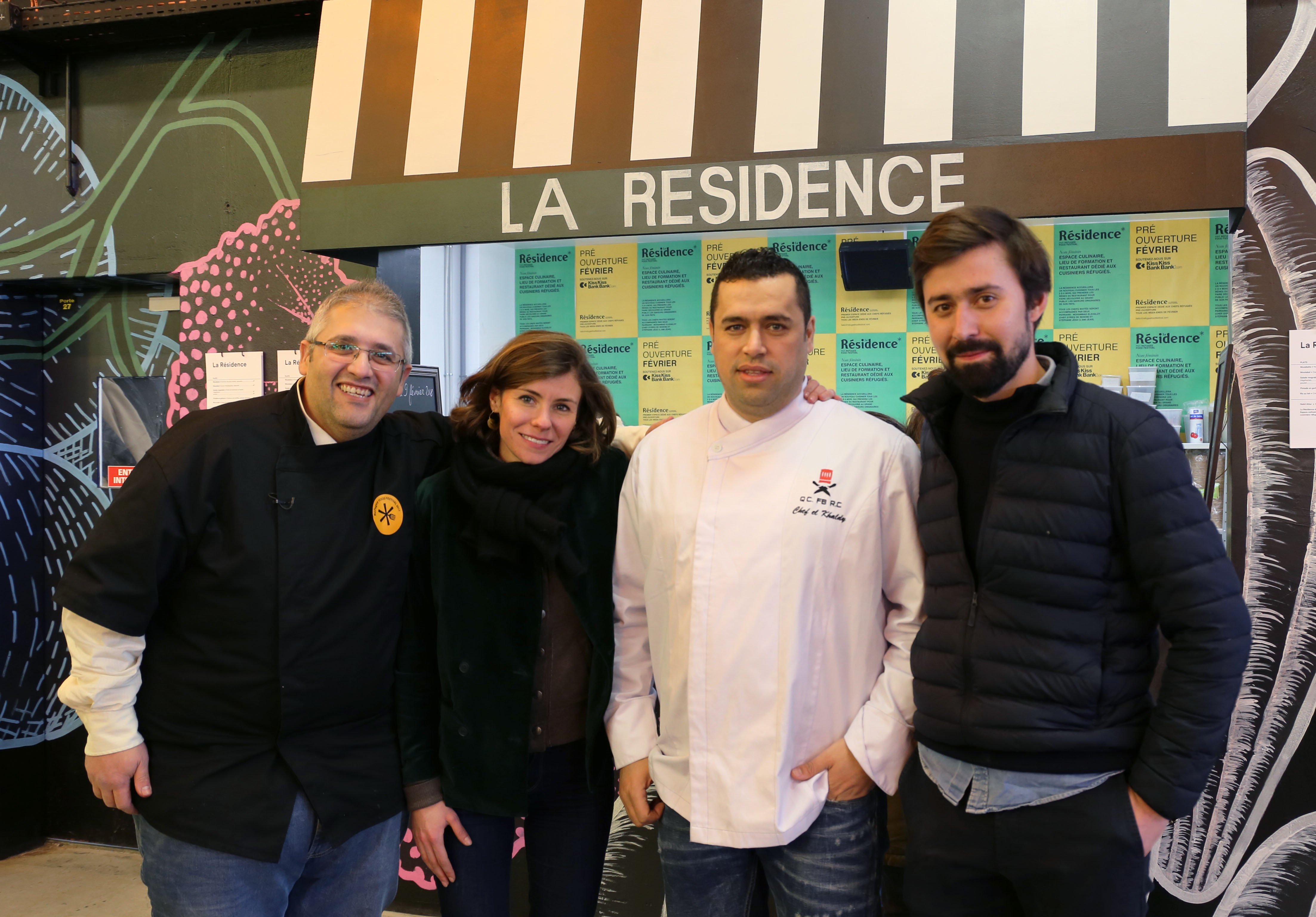 Nabil Attar, Marine Mandrila, Mohammad El Khaldy et Louis Martin devant le restaurant "la Résidence" © Camille Hispard