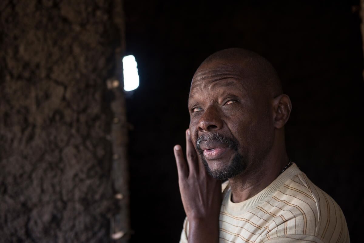 "Sammy : désormais aveugle après avoir été persécuté et torturé au Congo. Il vit maintenant dans une petite maison à Rwamwanja (le camp des réfugiés) avec sa femme. Il parle avec une voix douce. Il m'a dit qu'il aime se promener au crépuscule, parce qu'il y a moins de bruit." – Christine and the Queens