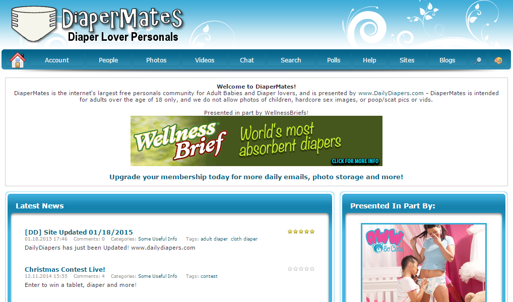 Last but not least, le plus décalé des sites, Diaper Mates, permet la rencontre de tous les amateurs de couches. La plateforme s'adresse à tous les "bébés adultes et amoureux des couches". Entre deux pubs pour des couches super-absorbantes, les membres du réseau postent des photos d'eux vêtus de leur "habit" fétiche. Chacun ses fantasmes.