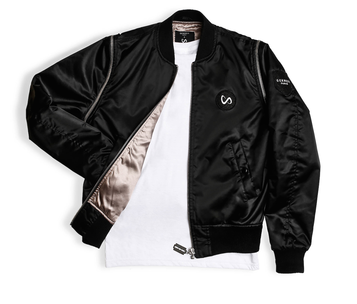 Vous vous êtes alliés pour créer une veste. Comment avez-vous décidé de travailler ensemble ? Très naturellement. On s’est rendus compte qu’il y avait énormément de demande. Il a déjà bossé sur une gamme de t-shirts et de goodies qui marchaient très bien et ses fans en voulaient plus. À ce moment-là, on s’est dit que l’on devrait faire quelque chose. J’étais très flatté qu’il me le demande à moi, sachant qu’il y a énormément de marques aux États-Unis qui souhaitent bosser avec lui. On a travaillé sur quelque chose qui ressemble à l’identité Germeii et à l’image de Snake. Au départ on a fait 500 pièces... Elles se sont écoulées en quelques heures. [caption id="attachment_64614" align="alignnone" width="1192"]