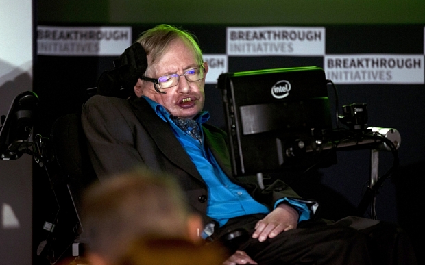 Stephen Hawking à la conférence de presse du projet Breakthrough Initiatives
