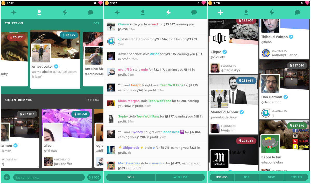 C'est d'ailleurs peut-être ce qui en fait un tel succès. Le principe : les joueurs se "volent" des profils Twitter en les payant avec une monnaie virtuelle. Tous les comptes Twitter sont sur Stolen!, même ceux qui n'ont pas l'application. Le but est de "posséder" ces comptes : ceux de ses amis, ennemis, de célébrités... Toutes les raisons sont bonnes. Ces comptes prennent de la valeur au fur et à mesure qu'ils sont échangés entre les joueurs, qui gagnent de l'argent en volant les comptes au bon moment. Un jeu similaire avait vu le jour sur Facebook en 2007 :