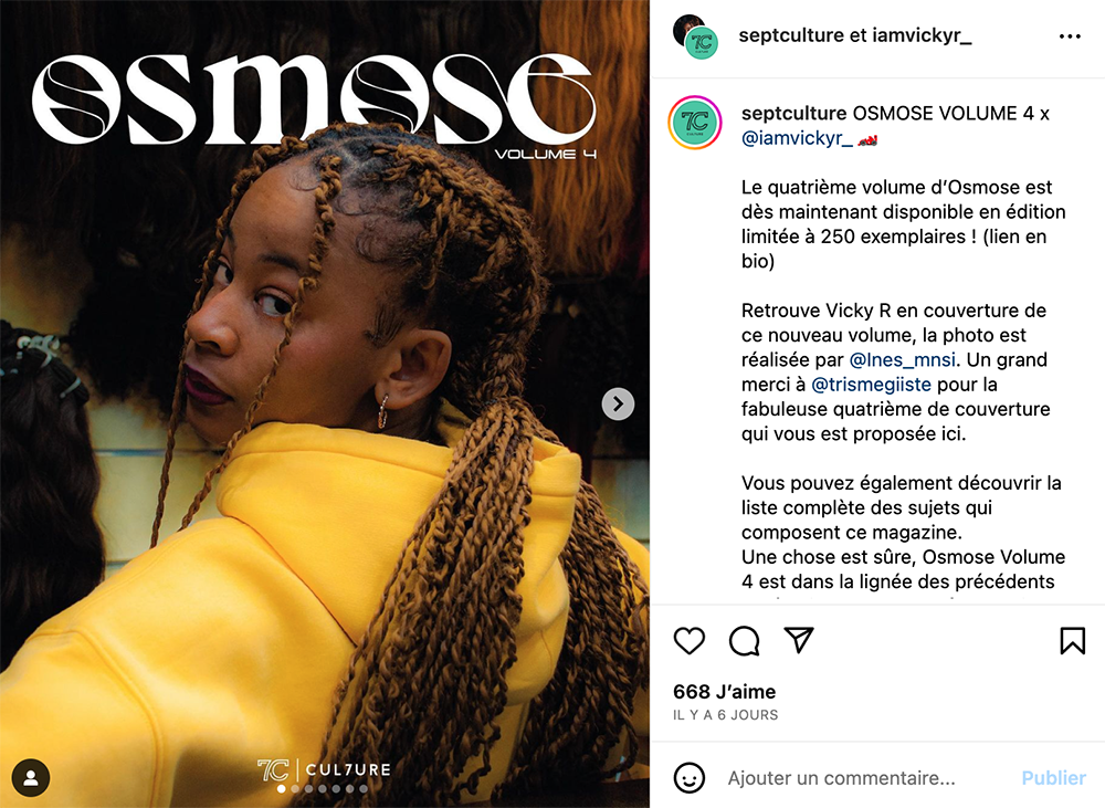 "Si demain, je ne peux plus payer l’hébergement du site, je perds six ans de travail. Par contre, je peux retrouver les trois premiers numéros du magazine dans ma bibliothèque", (Florian Garcia, du magazine Osmose)Do it yourself et tirages limités Pas de quoi freiner les nouveaux titres lancés ces dernières années. Version papier du média en ligne Cul7ure, le semestriel Osmose en est déjà à son quatrième numéro, avec la rappeuse et beatmakeuse Vicky R en couverture. Autre exemple : le "blingzine" Hip-hop 33 Carats. Ce magazine bilingue en français et en anglais, qui existe depuis 2020 en papier, a sorti en mars son sixième numéro, avec une photo d’Aaliyah en une. Le titre compte d’ailleurs sortir 33 numéros au total.