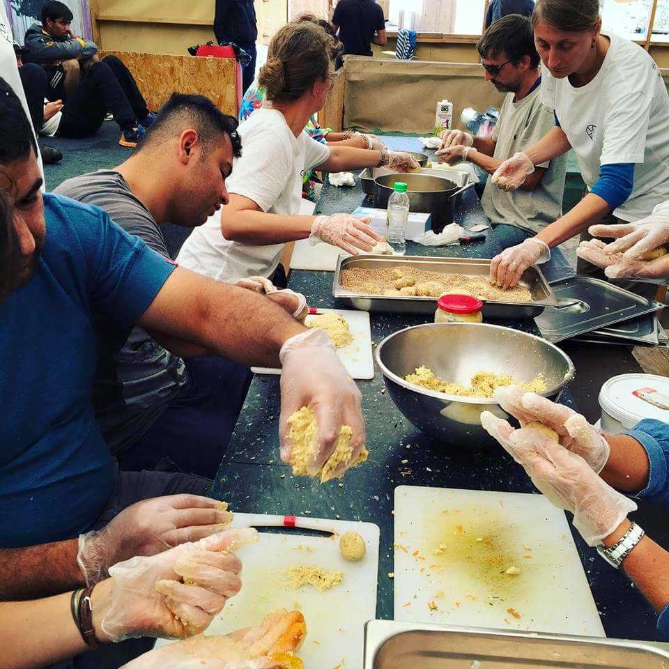 Pendant trois semaines cet été, l’équipe – épaulée de chefs étoilés bénévoles - a préparé chaque midi environ deux cents repas végétariens (« car c’est une cuisine tournée vers la vie et sans religion », explique la comédienne Laura Domenge). Les après-midis, l’équipe animait des ateliers de cuisine. L’occasion de transmettre des savoir-faire, de recréer de la mixité dans le camp, de tisser des liens avec les volontaires des populations locales et… d’échanger des recettes. Car pour l’équipe du RECHO, l’insertion des réfugiés passera par ce biais : en France, 35 000 postes sont à pourvoir dans le secteur de la restauration.