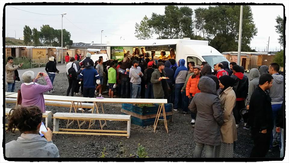 Le food truck sur le camp de Grande-Synthe (photo Facebook le RECHO)[/caption]
